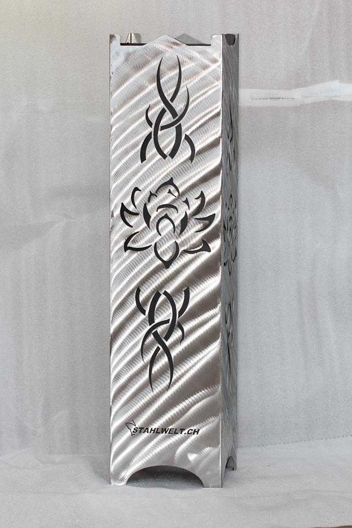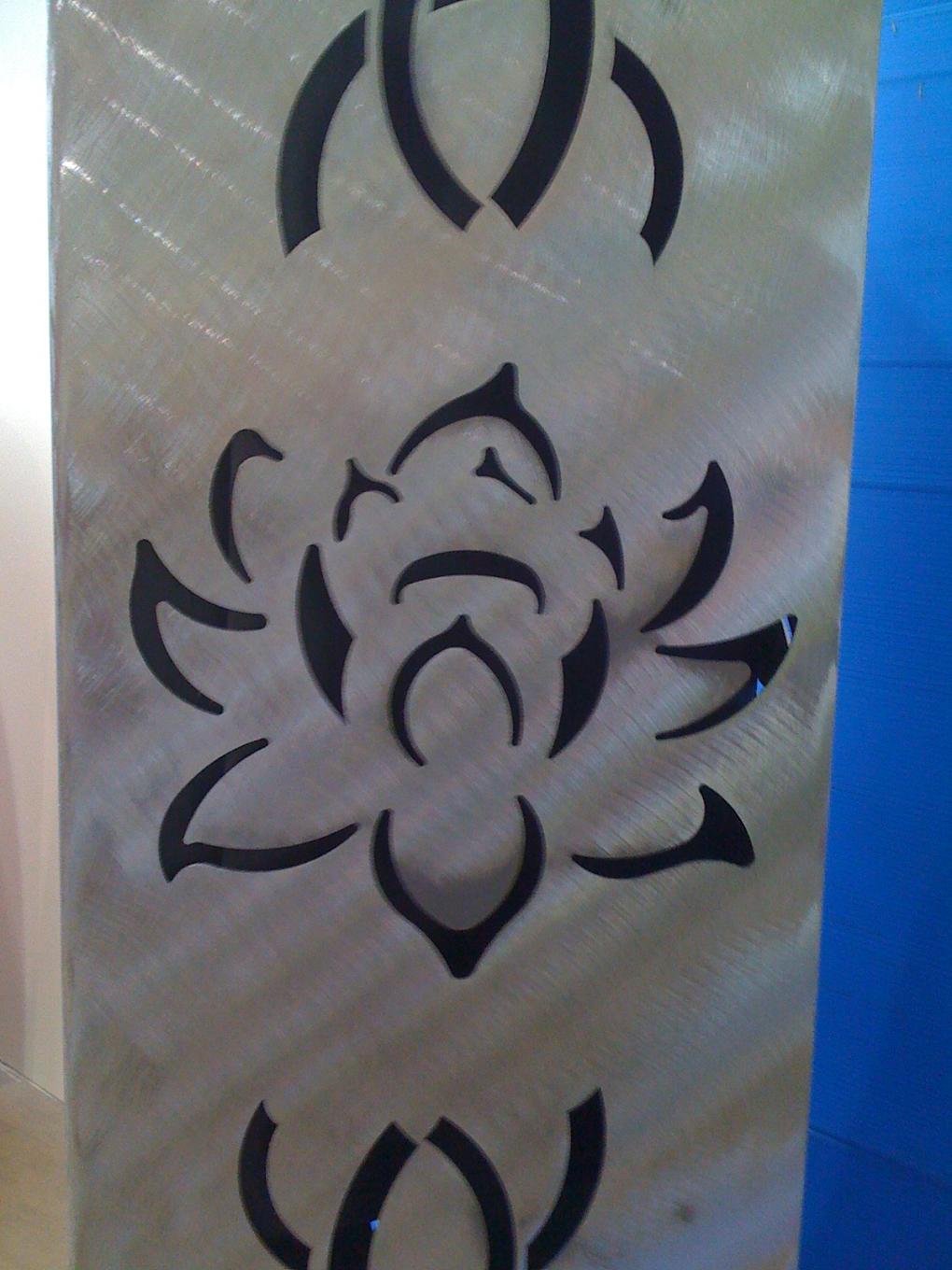 Diese Blumensäule ist rundum mit Lotusblütenausschnitten versehen.